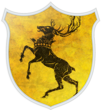 Баратеоны — молодой дом по сравнению с другими великими домами, насчитывающими подчас тысячи лет истории: он был основан во времена завоевания Вестероса Эйгоном I Таргариеном и находится в отдалённом родстве с домом Таргариенов. За пятнадцать лет до начала повествования Роберт Баратеон сверг династию Таргариенов и сам стал королём.